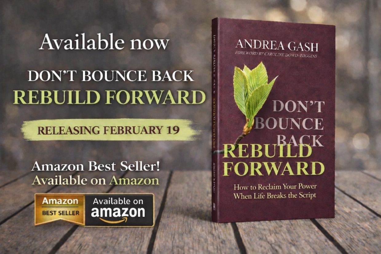 In Andrea Gash’s book, Don’t Bounce Back, Rebuild Forward, she acknowledges the often-unseen grief that comes with life’s unexpected disruptions, losses, and changes. Through stories and practical tips, she guides anyone navigating these breaks. With her proven Momentum Method, she also equips readers with actionable tools to reconstruct their lives. Her step-by-step framework helps individuals discover who they are now and prepares them to build a life that feels like their own.